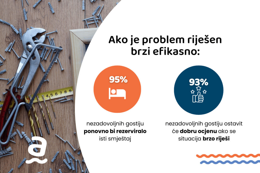 Uslužne djelatnosti, u koje spada i iznajmljivanje smještaja, podložne su kritikama te je jako važno kako se nosimo s njima i koliko brzo reagiramo u ovakvim, kriznim situacijama. O tome kako se postavimo i odgovorimo ovisit će i ocjena smještaja. Ta ocjena može biti dobra, a komentar pozivan čak i ako nije sve ispalo tako savršeno kako smo se nadali.