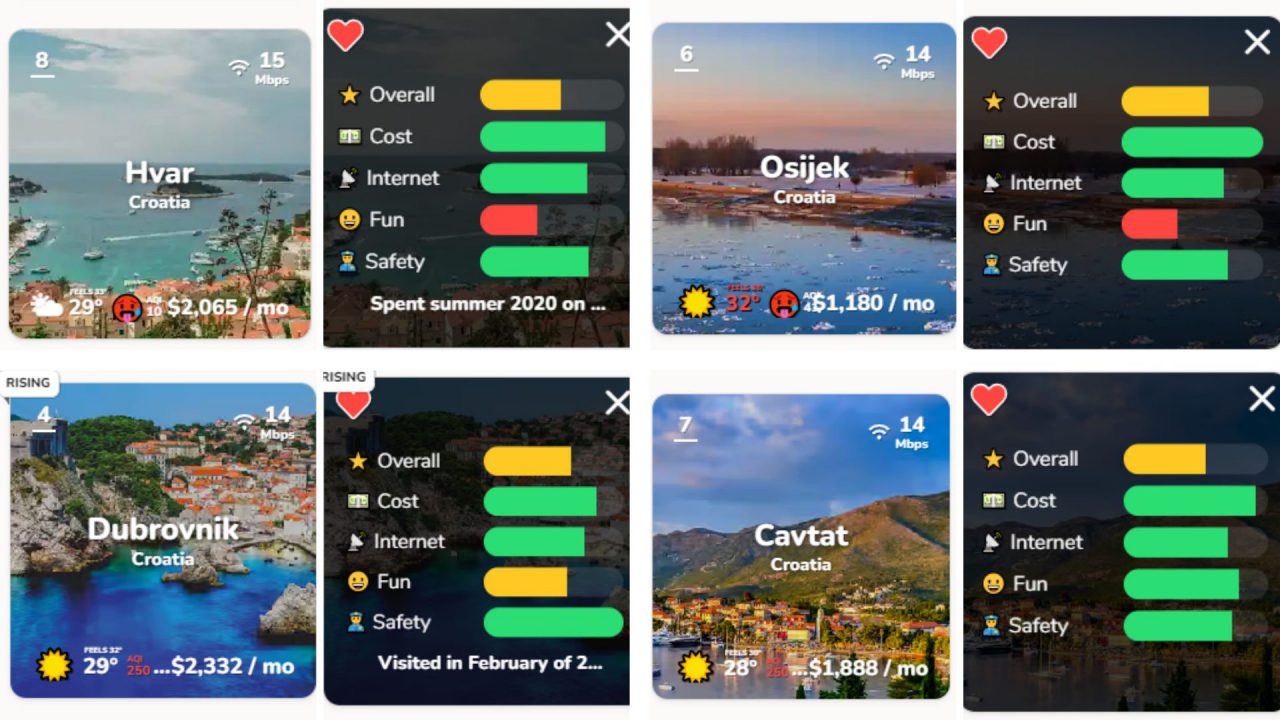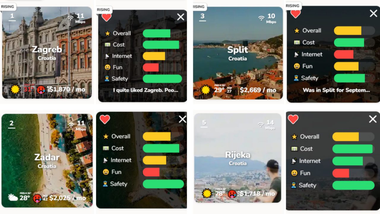 Na navedenoj stranici digitalni nomadi ocjenjuju i destinacije u kojima borave te smo tako naišli i na Hrvatske gradove, čije ocjene možete vidjeti u galeriji.
