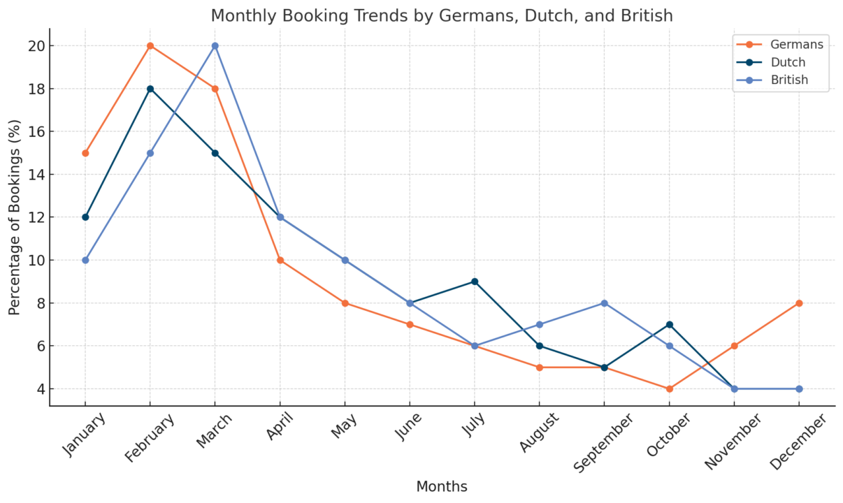 Njemački, nizozemski i britanski turisti poznati su po tome da planiraju svoje odmore unaprijed. Oni žele osigurati kvalitetan smještaj za svoje obitelji ili prijatelje, traže najbolju vrijednost za novac i cijene organiziranost. Ovo tržište preferira ranije rezervacije kako bi izbjegli stres i osigurali željeni termin.